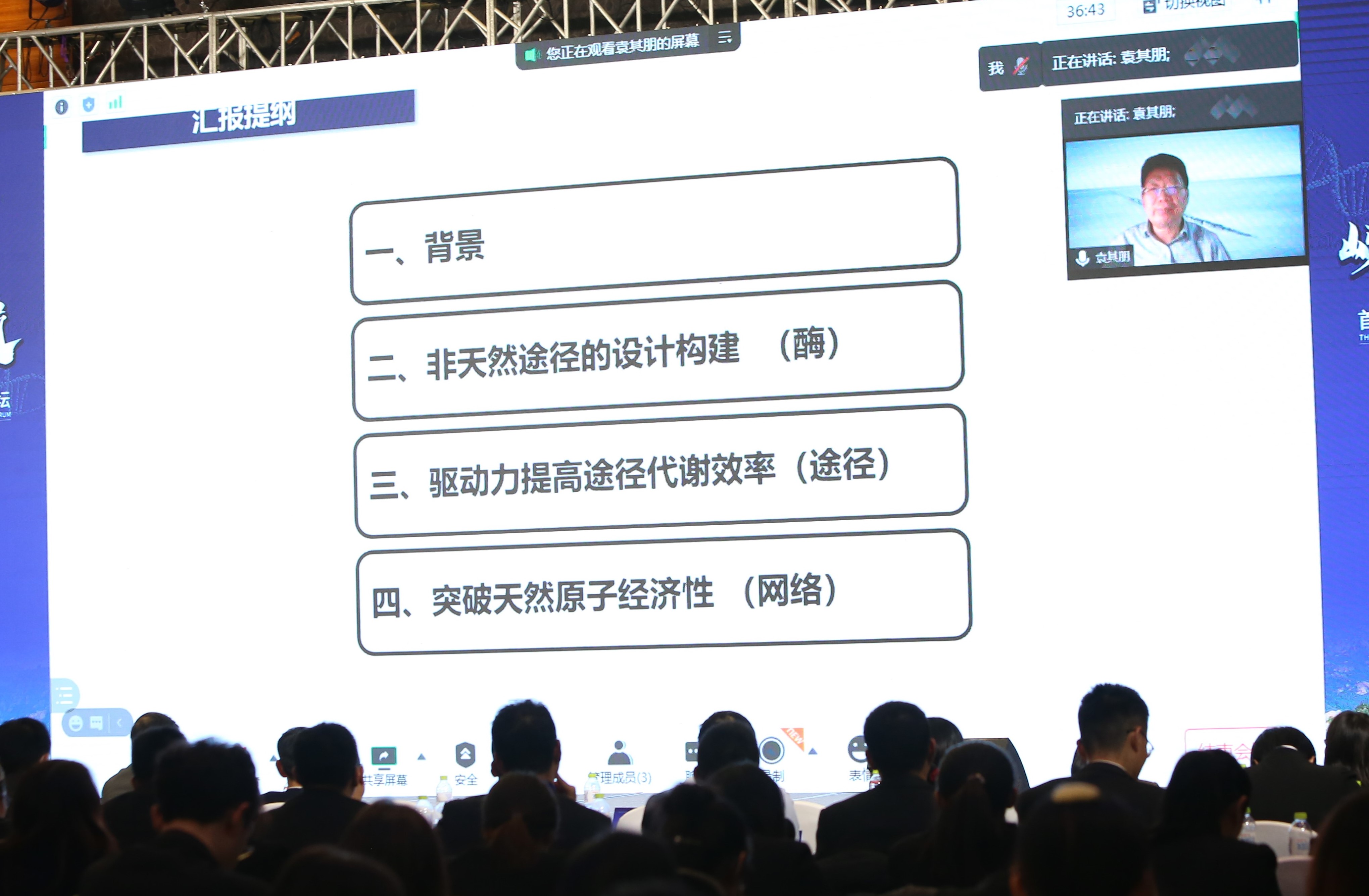 北京化工大学生命科学与技术学院袁其朋教授视频连线作《合成生物学—从基础研究到产业化》的主题报告。